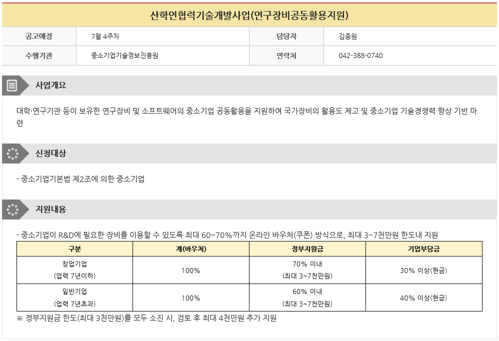 Á¦¸ñ »êÇп¬Çù·Â±â¼ú°³¹ß»ç¾÷(¿¬±¸Àåºñ°øµ¿È°¿ëÁö¿ø)