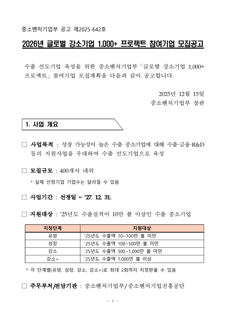 Á¦¸ñ 2026³â ±Û·Î¹ú °­¼Ò±â¾÷ 1,000+ ÇÁ·ÎÁ§Æ® Âü¿©±â¾÷ ¸ðÁý°ø°í