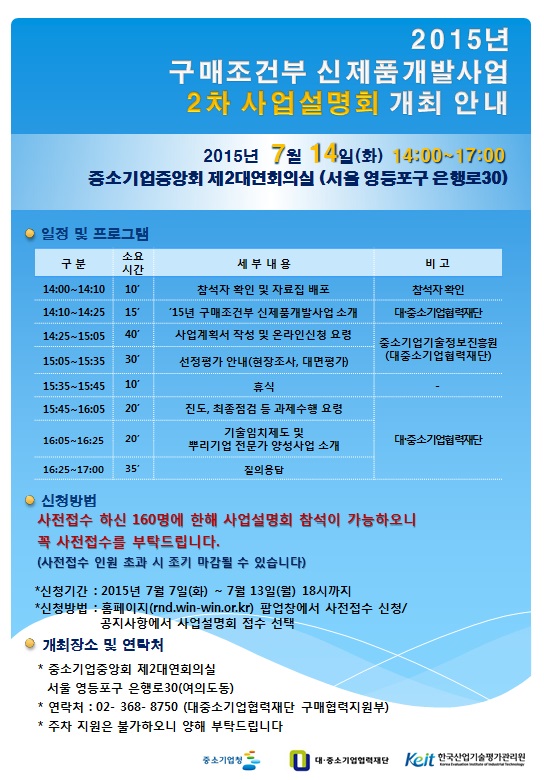 Á¦¸ñ 2015³â ±¸¸ÅÁ¶°ÇºÎ ½ÅÁ¦Ç°°³¹ß»ç¾÷ 2Â÷ »ç¾÷¼³¸íȸ °³ÃÖ ¾È³»