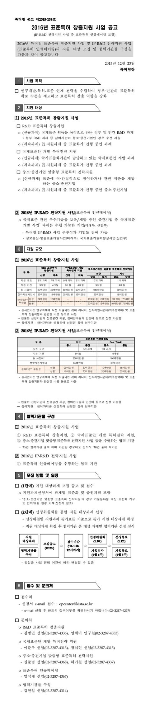 Á¦¸ñ 2016³â Ç¥ÁØÆ¯Çã âÃâÁö¿ø »ç¾÷ °ø°í