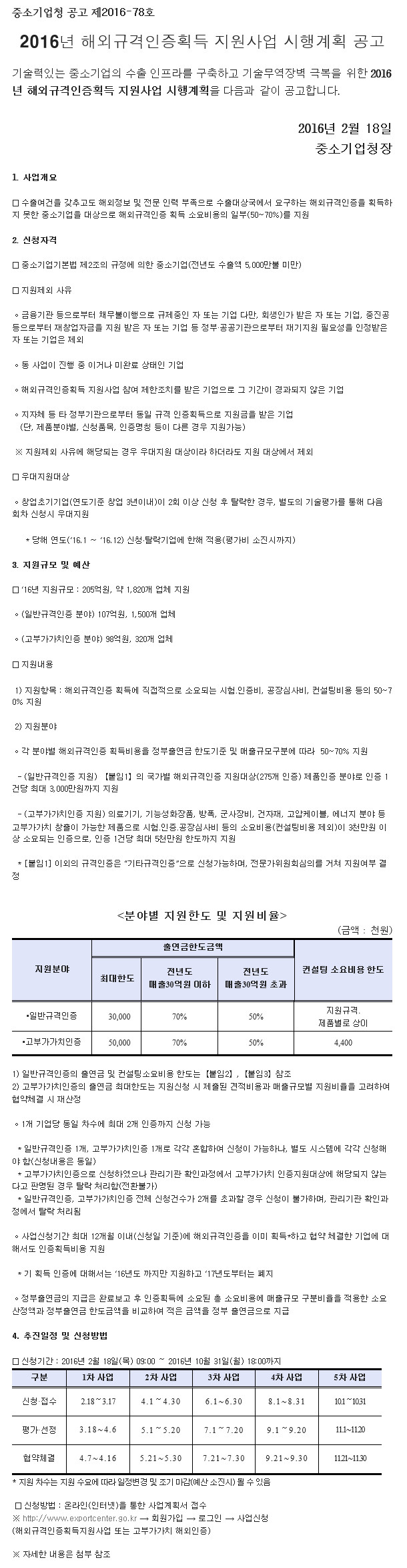 Á¦¸ñ 2016³â ÇØ¿Ü±Ô°ÝÀÎÁõȹµæ Áö¿ø»ç¾÷ ½ÃÇà°èȹ °ø°í