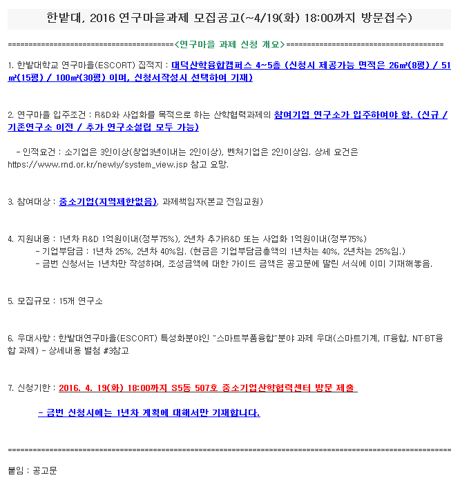 Á¦¸ñ Çѹç´ë, 2016 ¿¬±¸¸¶À»°úÁ¦ ¸ðÁý°ø°í(~4/19(È­) 18:00±îÁö ¹æ¹®Á¢¼ö)