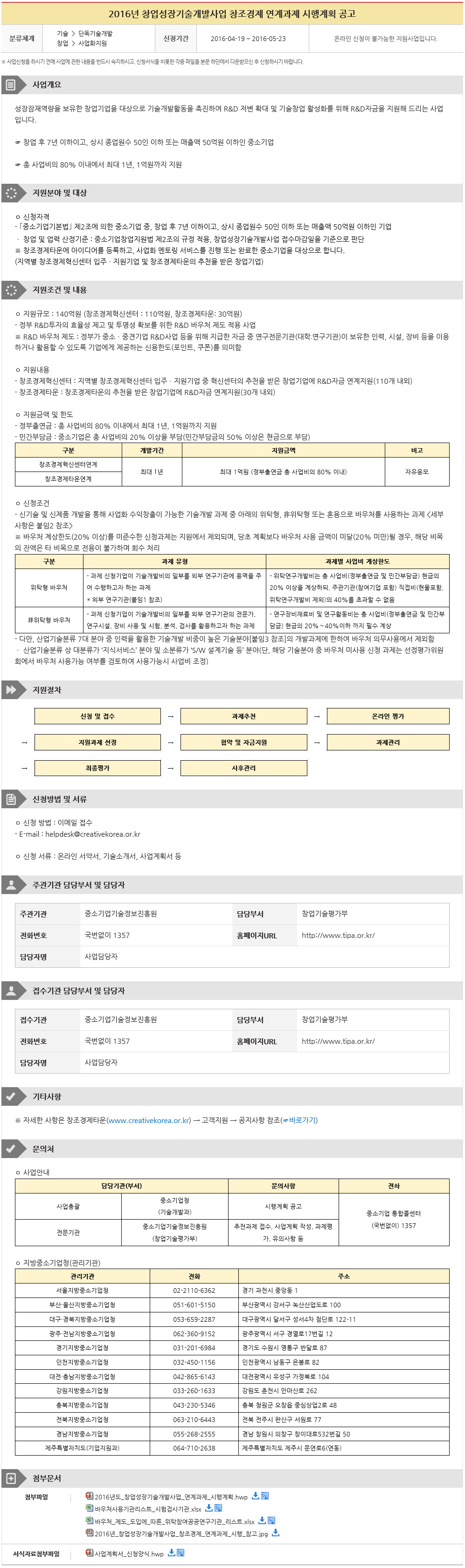 Á¦¸ñ 2016³â â¾÷¼ºÀå±â¼ú°³¹ß»ç¾÷ âÁ¶°æÁ¦ ¿¬°è°úÁ¦ ½ÃÇà°èȹ °ø°í