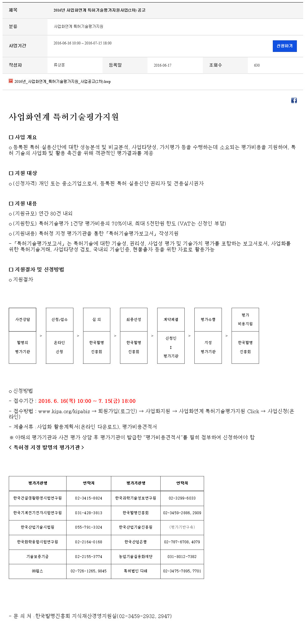Á¦¸ñ 2016³â »ç¾÷È­¿¬°è ƯÇã±â¼úÆò°¡Áö¿ø»ç¾÷(2Â÷) °ø°í