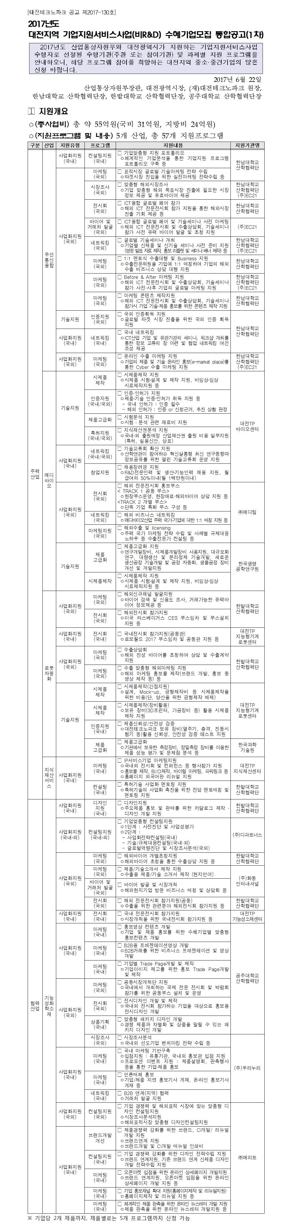 Á¦¸ñ 2017³âµµ ´ëÀüÁö¿ª ±â¾÷Áö¿ø¼­ºñ½º»ç¾÷(ºñR&D) ¼öÇý±â¾÷¸ðÁý ÅëÇÕ°ø°í(1Â÷)