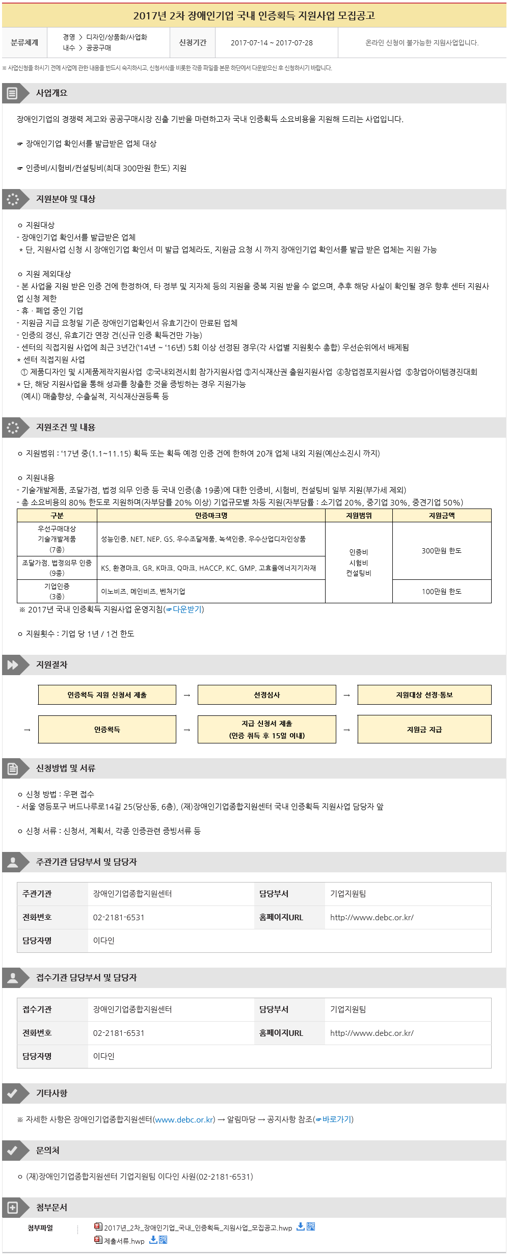 Á¦¸ñ 2017³â 2Â÷ Àå¾ÖÀαâ¾÷ ±¹³» ÀÎÁõȹµæ Áö¿ø»ç¾÷ ¸ðÁý°ø°í