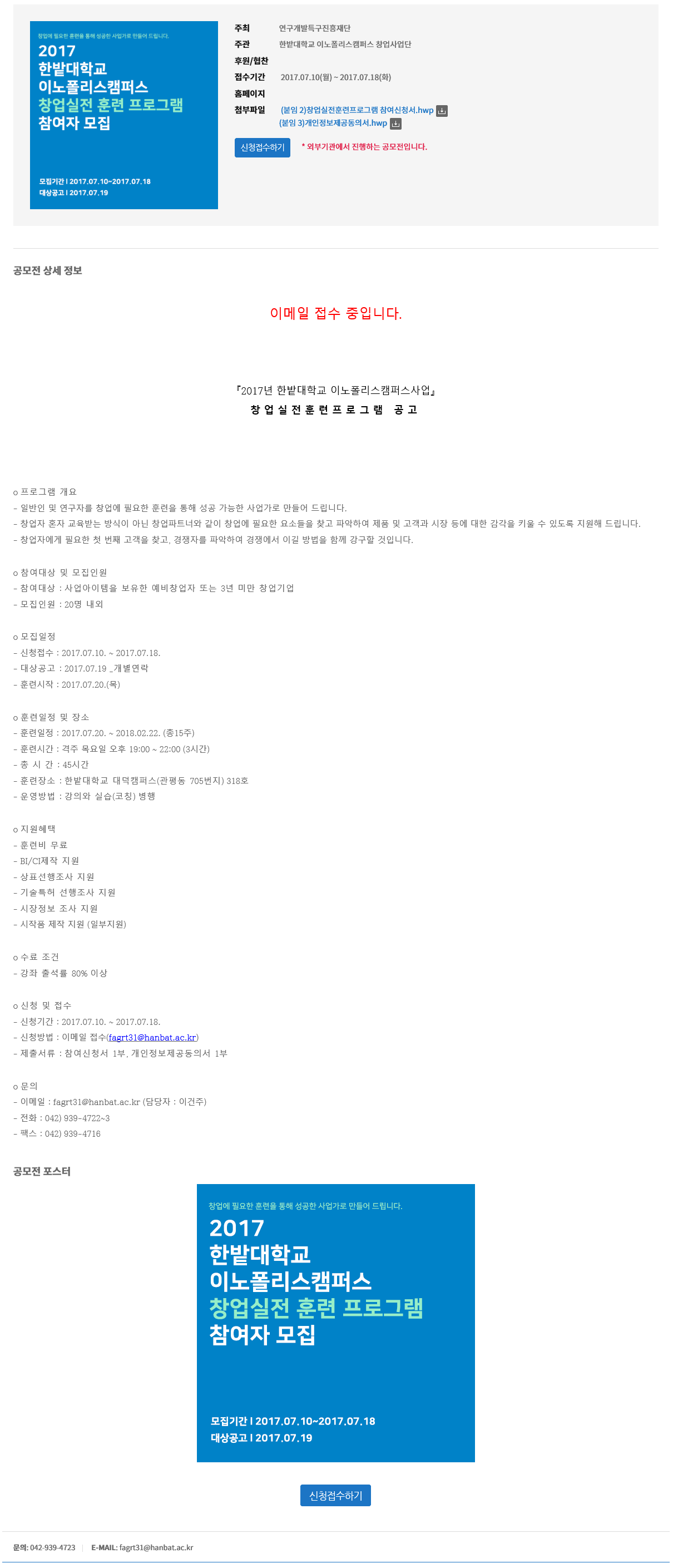 Á¦¸ñ Çѹç´ëÇб³ À̳ëÆú¸®½ºÄ·ÆÛ½º â¾÷½ÇÀü ÈÆ·Ã ÇÁ·Î±×·¥ Âü¿©ÀÚ ¸ðÁý