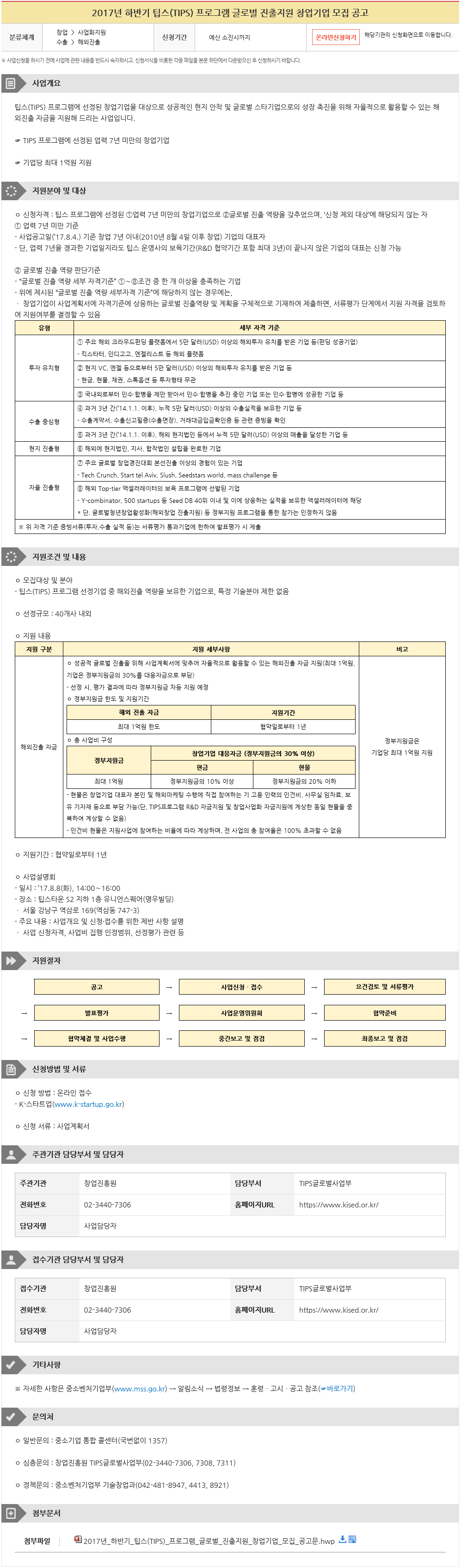 Á¦¸ñ 2017³â ÇÏ¹Ý±â ÆÁ½º(TIPS) ÇÁ·Î±×·¥ ±Û·Î¹ú ÁøÃâÁö¿ø â¾÷±â¾÷ ¸ðÁý °ø°í