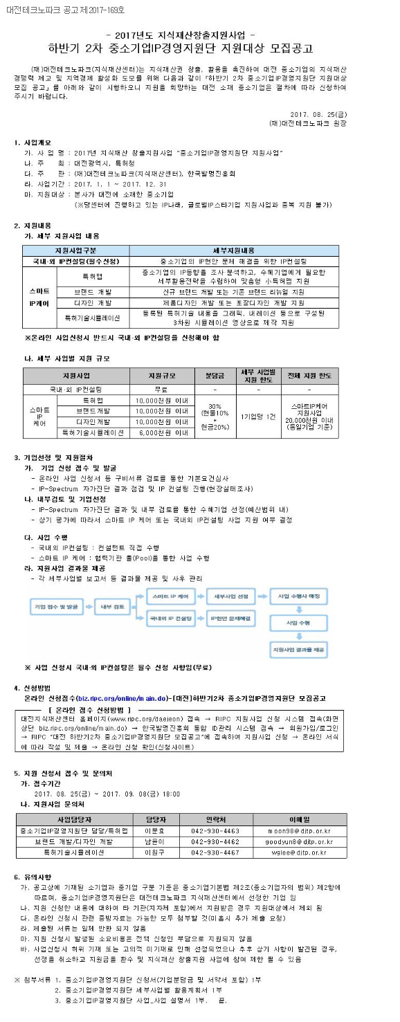 Á¦¸ñ ÇϹݱâ 2Â÷ Áß¼Ò±â¾÷IP°æ¿µÁö¿ø´Ü Áö¿ø´ë»ó ¸ðÁý°ø°í