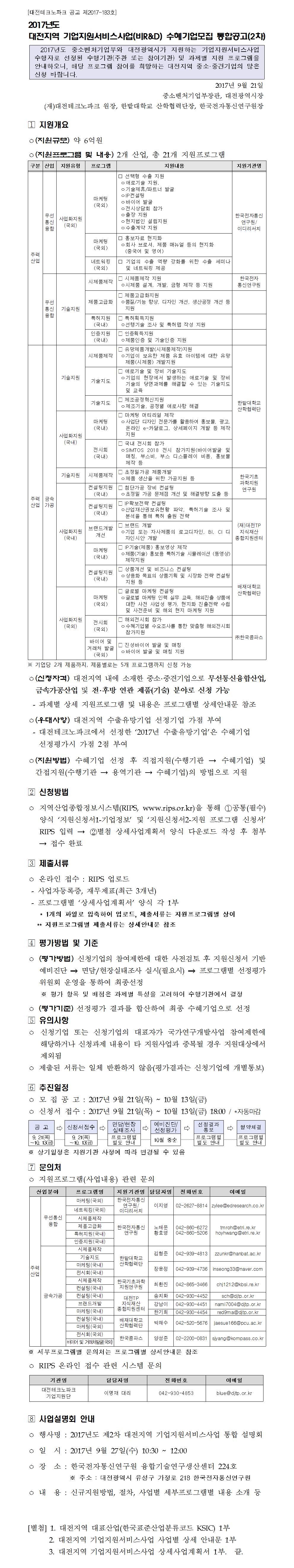 Á¦¸ñ 2017³âµµ ´ëÀüÁö¿ª ±â¾÷Áö¿ø¼­ºñ½º»ç¾÷(ºñR&D) ¼öÇý±â¾÷¸ðÁý ÅëÇÕ°ø°í(2Â÷)