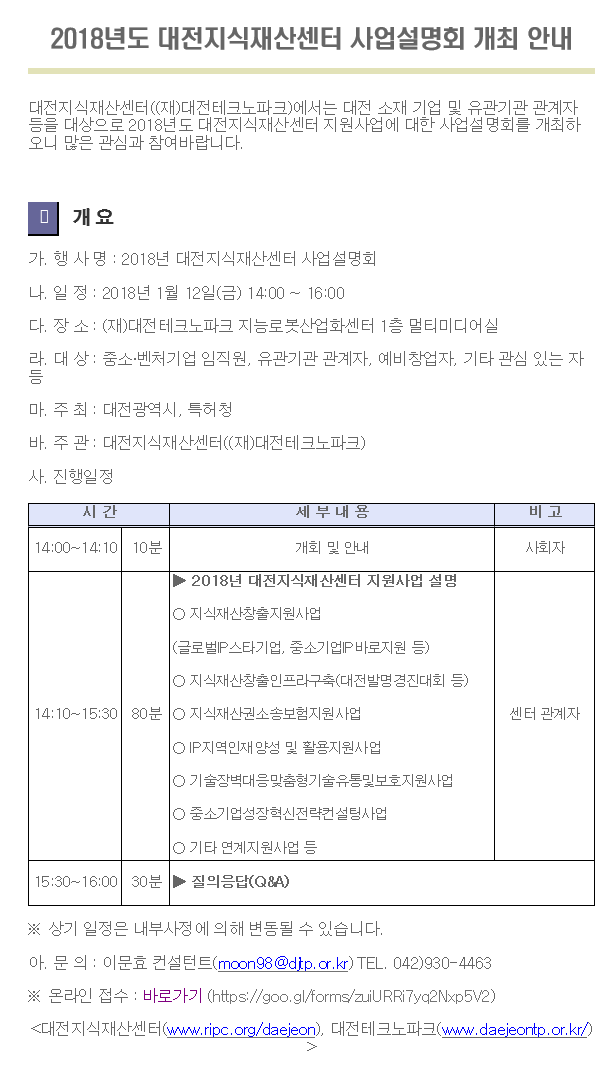 Á¦¸ñ 2018³âµµ ´ëÀüÁö½ÄÀç»ê¼¾ÅÍ »ç¾÷¼³¸íȸ °³ÃÖ ¾È³»