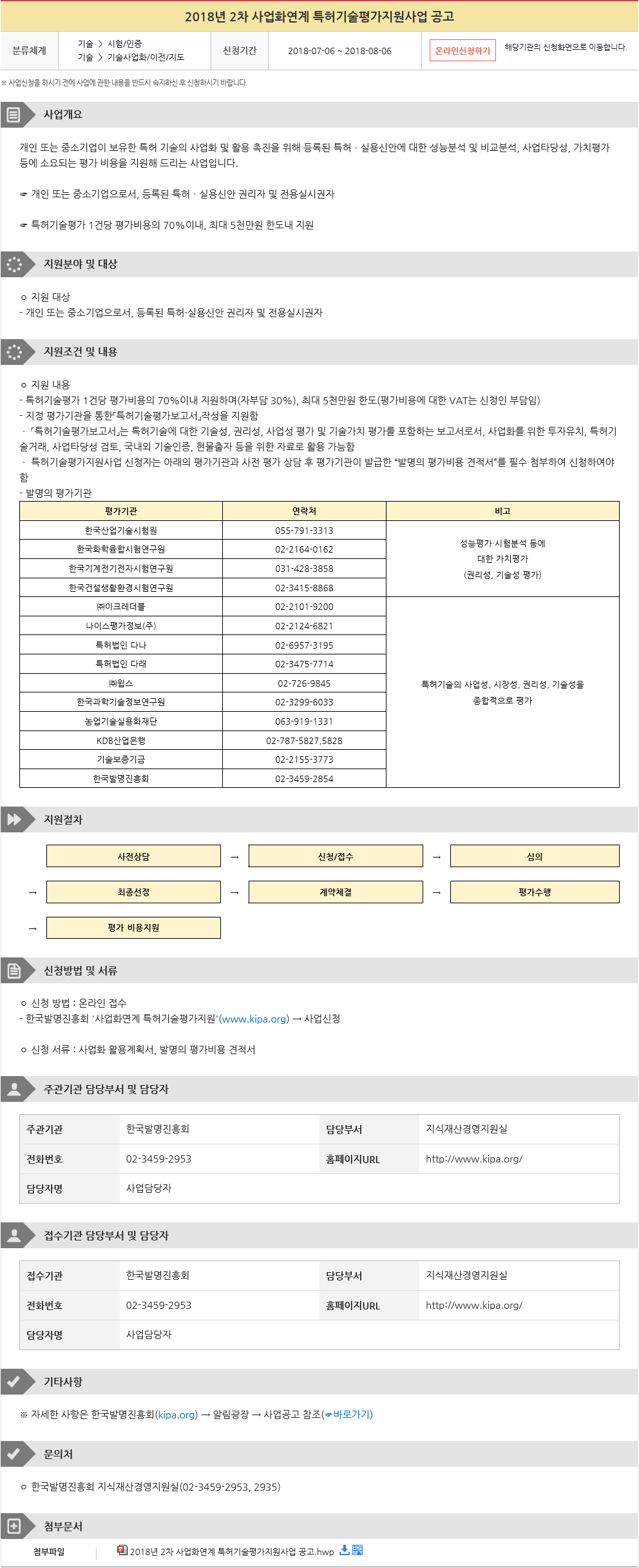 Á¦¸ñ 2018³â 2Â÷ »ç¾÷È­¿¬°è ƯÇã±â¼úÆò°¡Áö¿ø»ç¾÷ °ø°í