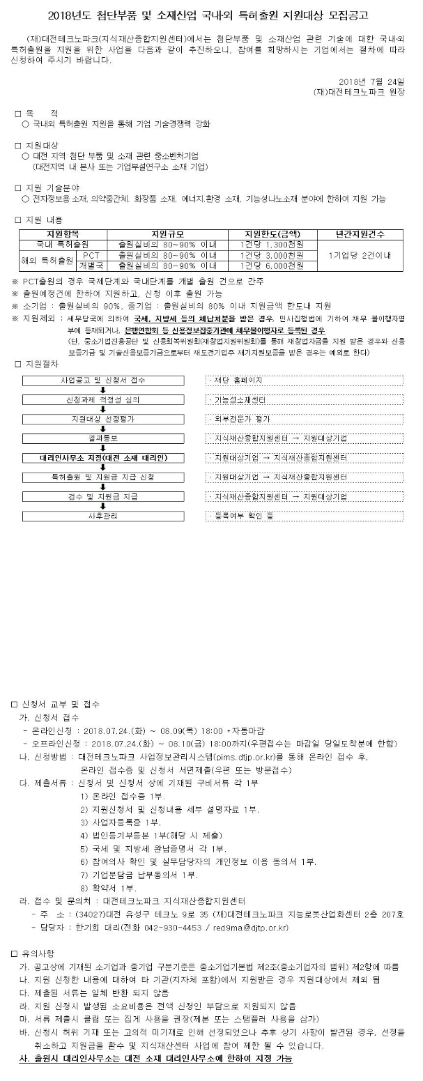 Á¦¸ñ 2018³âµµ ÷´ÜºÎǰ ¹× ¼ÒÀç»ê¾÷ ±¹³»․¿Ü ƯÇãÃâ¿ø Áö¿ø´ë»ó ¸ðÁý°ø°í
