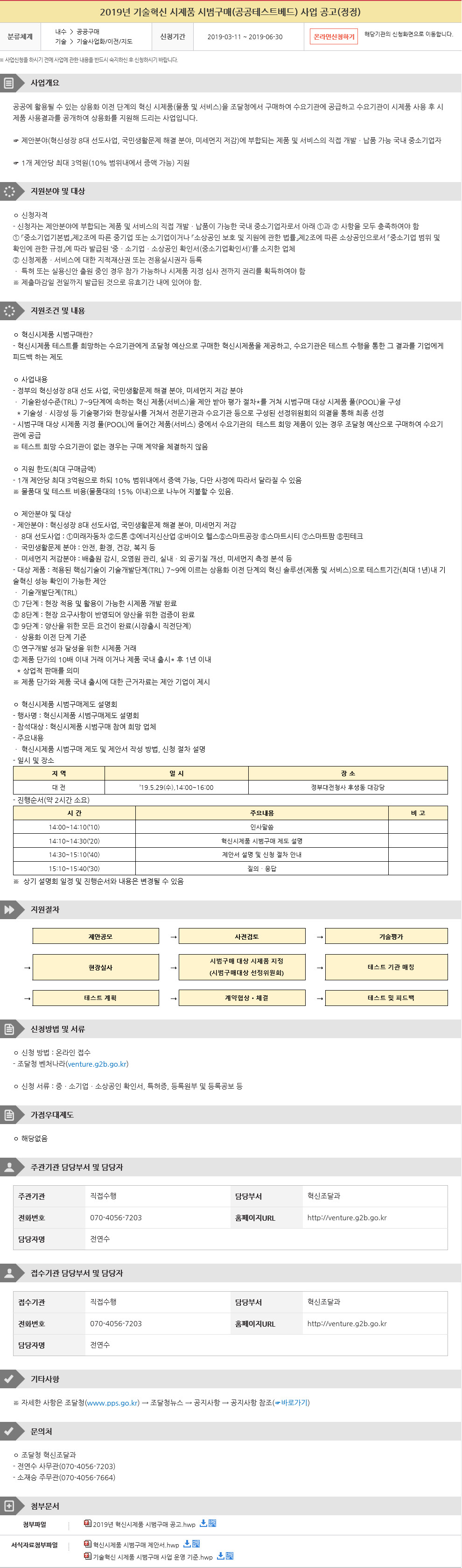 Á¦¸ñ 2019³â ±â¼úÇõ½Å ½ÃÁ¦Ç° ½Ã¹ü±¸¸Å(°ø°øÅ×½ºÆ®º£µå) »ç¾÷ °ø°í(Á¤Á¤)