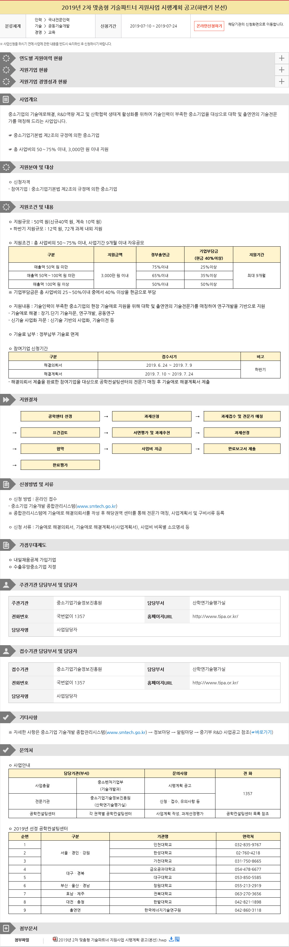 Á¦¸ñ 2019³â 2Â÷ ¸ÂÃãÇü ±â¼úÆÄÆ®³Ê Áö¿ø»ç¾÷ ½ÃÇà°èȹ °ø°í(ÇϹݱ⠺»¼±)